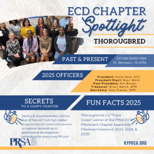 Best Practices, PersonalThe East Central District “Chapter Spotlight” recognition gallops into October with the spotlight on the PRSA Thoroughbred Chapter.