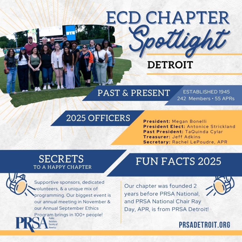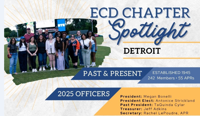 Considering the 2025 East Central District Conference ended with the exciting announcement that ECDC will move next year to Detroit, it is only appropriate to celebrate our colleagues in the Motor City by shining the November ECD Chapter Spotlight on PRSA Detroit.